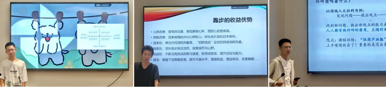 随后,2023级优秀学生代表分别作了主题为“跑步与自我价值”“自我价值与心理健康”“学习动机与自我发展”“人文学科科研感想”以及“科学研究与论文撰写”的经验分享。同学们结合自身经历,从课程重点、时间管理到科研入门、体育运动与健康等多个维度为大家提供了实用建议,帮助大家明确学习方向,适应专业学习节奏。