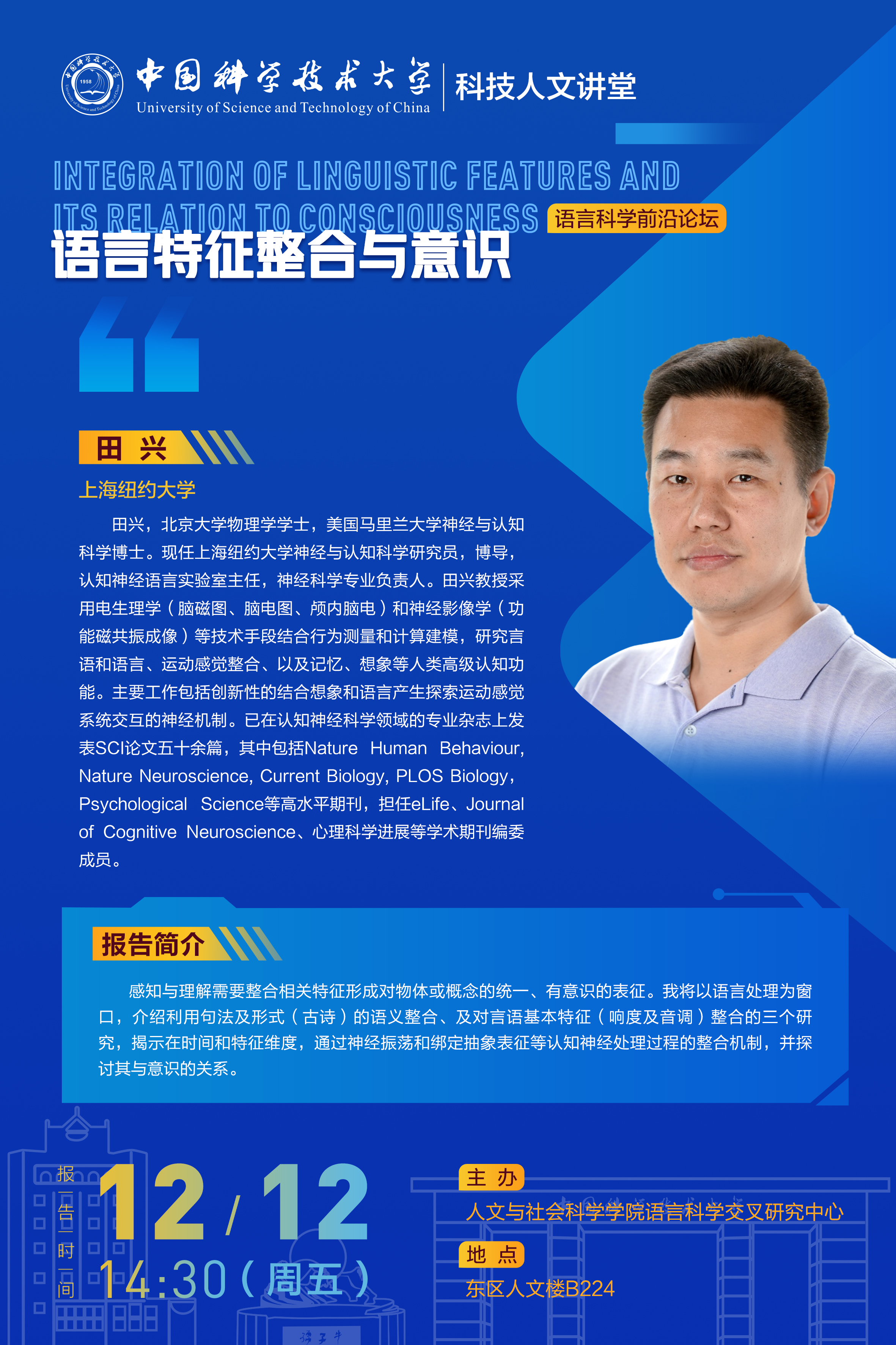 科技人文讲堂|语言科学前沿论坛|语言特征整合与意识