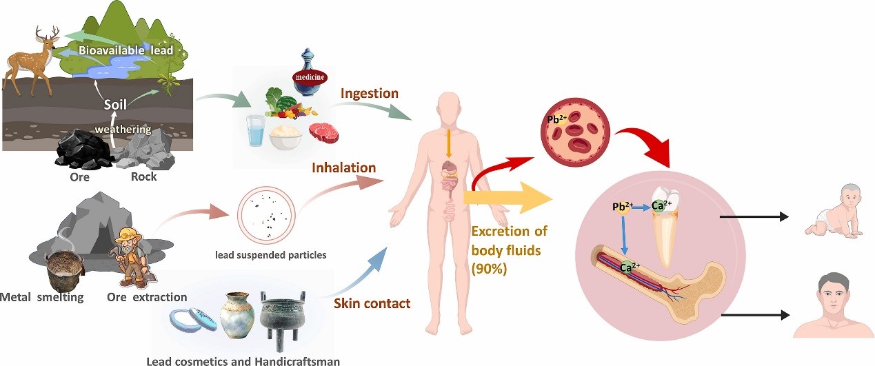 铅在地球上分布广泛,是被人类最早开采冶炼的金属之一。但铅也是公认的神经毒素,损害认知、学习与社交行为。铅暴露并不只是工业革命的产物,而是人类进化环境的一部分。铅暴露影响了古人类和尼安德特人的大脑进化与行为。罗马帝国对铅制水管、容器、含铅调味剂和颜料的大量使用造成了罗马人铅中毒现象。中国利用铅的历史也十分悠久,在夏商周时期就形成了东亚特色的青铜铸造加铅技术。湖泊沉积物研究显示金属开采与冶炼造成了显著的重金属环境污染,但中国古代人类铅暴露史鲜有研究。