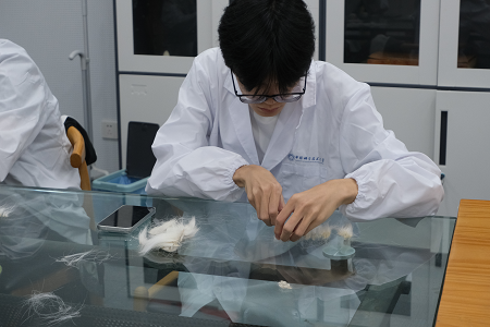 在笔工坊,佘征军介绍,一支上乘宣笔的诞生,需历经选料、配料、梳、齐、整等一百多道精细工序,每一道都考验着制笔人的耐心与匠心。他亲自演示了如何选用优质的山羊毛、黄鼠狼尾毛或石獾毛等原料,经过反复梳洗、浸泡与修整,最终使笔毫达到“尖、圆、齐、健”的四德标准。同学们围在操作台前,亲眼见证毫毛在大师手中被梳理得整齐划一,对“千万毛中拣一毫”的极致追求有了更为震撼的理解。