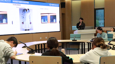 贾倩聚焦学院实验室安全管理要点,通报近年典型安全事故,解读相关安全法律法规。针对化学药品、人员安全、仪器设备、电气及消防安全等关键领域,她结合具体条例明确了管理规范与责任边界,并详细介绍安全准入、安全检查及隐患整改的闭环管理流程。