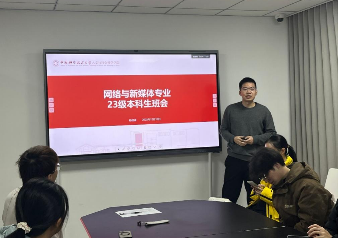 为进一步明确学期重点工作,科技传播系2023级本科班于12月19日召开主题班会。班主任孙启孟老师主持班会,围绕同学们普遍关心的保研前景、学业规划、班级建设等议题,进行了深入的政策解读与互动交流。