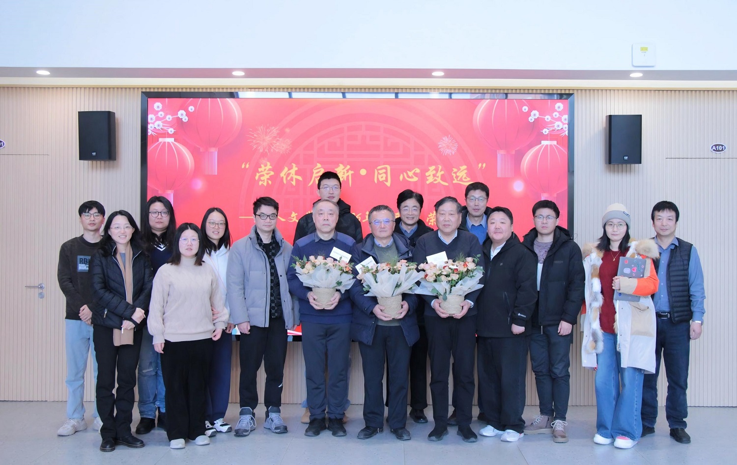 1月23日上午,人文与社会科学学院2025年教职工荣休仪式暨党外人士代表、新进教职工座谈会在人文楼A101举行。学院党委书记李雅清、副院长朱孟潇、2025年荣休教职工、新进教职工及相关系(中心)负责人共同参会。座谈会由学院工会文体委员乔乔主持。