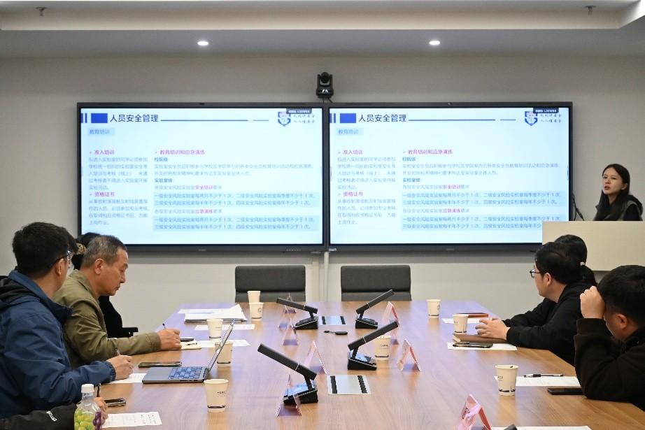 邓曼妮汇报了我院2026年实验室安全重点工作。会议明确实行“校—院—实验室”三级准入与分级管理机制,灵活开展安全培训并做好履职留痕。学院将强化危化品双人双锁管理、气瓶固定、用电规范等管控措施,按风险等级落实培训演练与日常自查,同时推进智能监控系统建设,实现隐患的闭环管理。